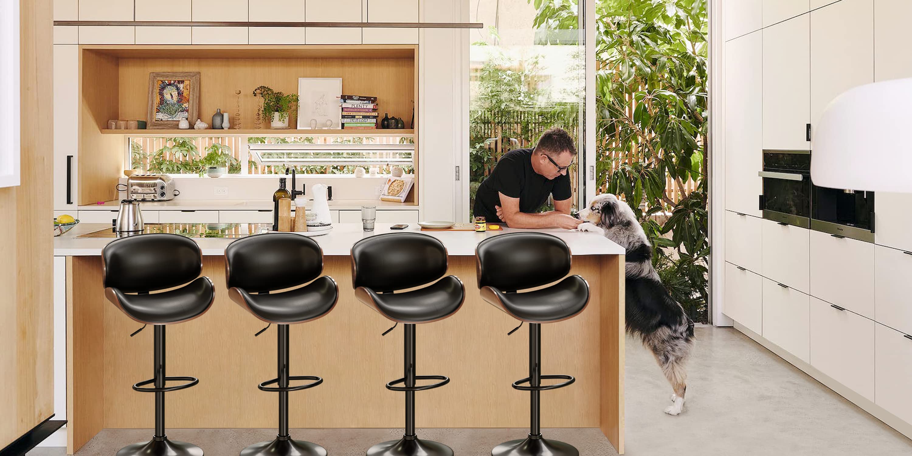 YaFiti 26" PU Leather Bar Stools Set of 2 with Solid Wood Legs Black
