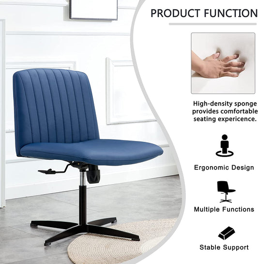 YaFiti Armless Office Desk Chair No Wheels Modern Swivel Vanity Chair, Blue