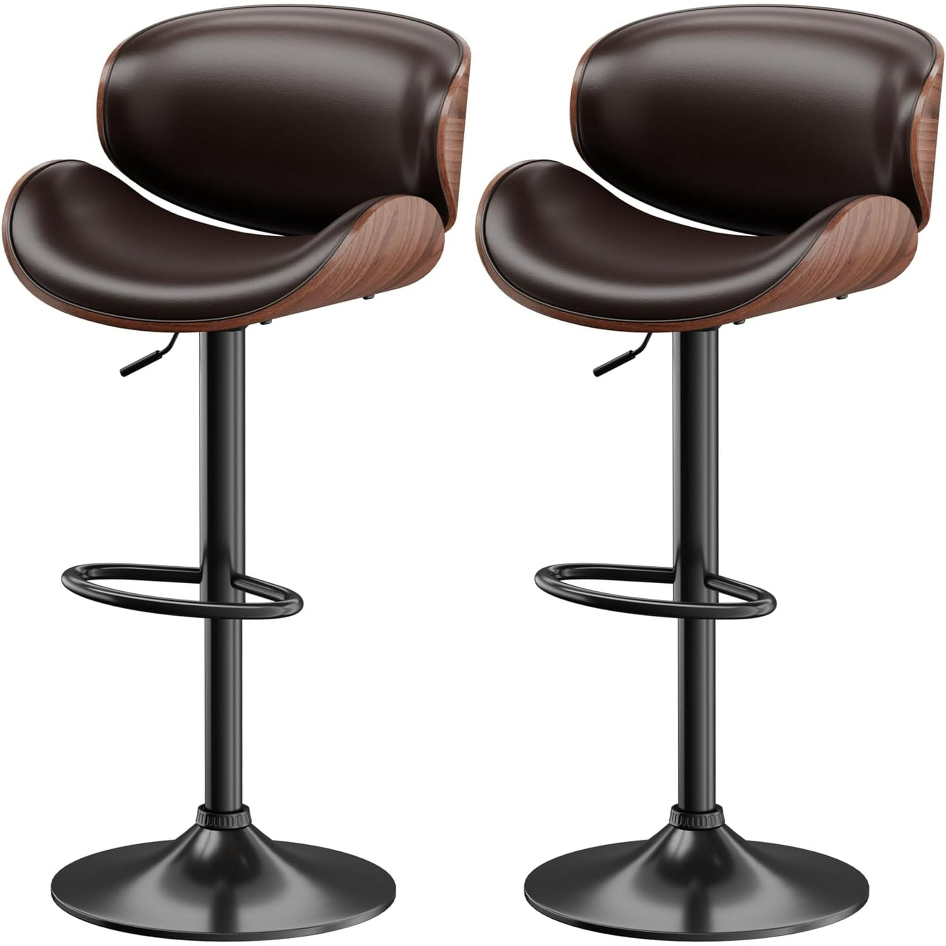 Bar Stools Adjustable Swivel Barstools Counter Stools with Back Sets of 2, Mid-Century Modern PU Leather Upholstered Counter Height Barstools, Kitchen Island Bar Chairs, Brown