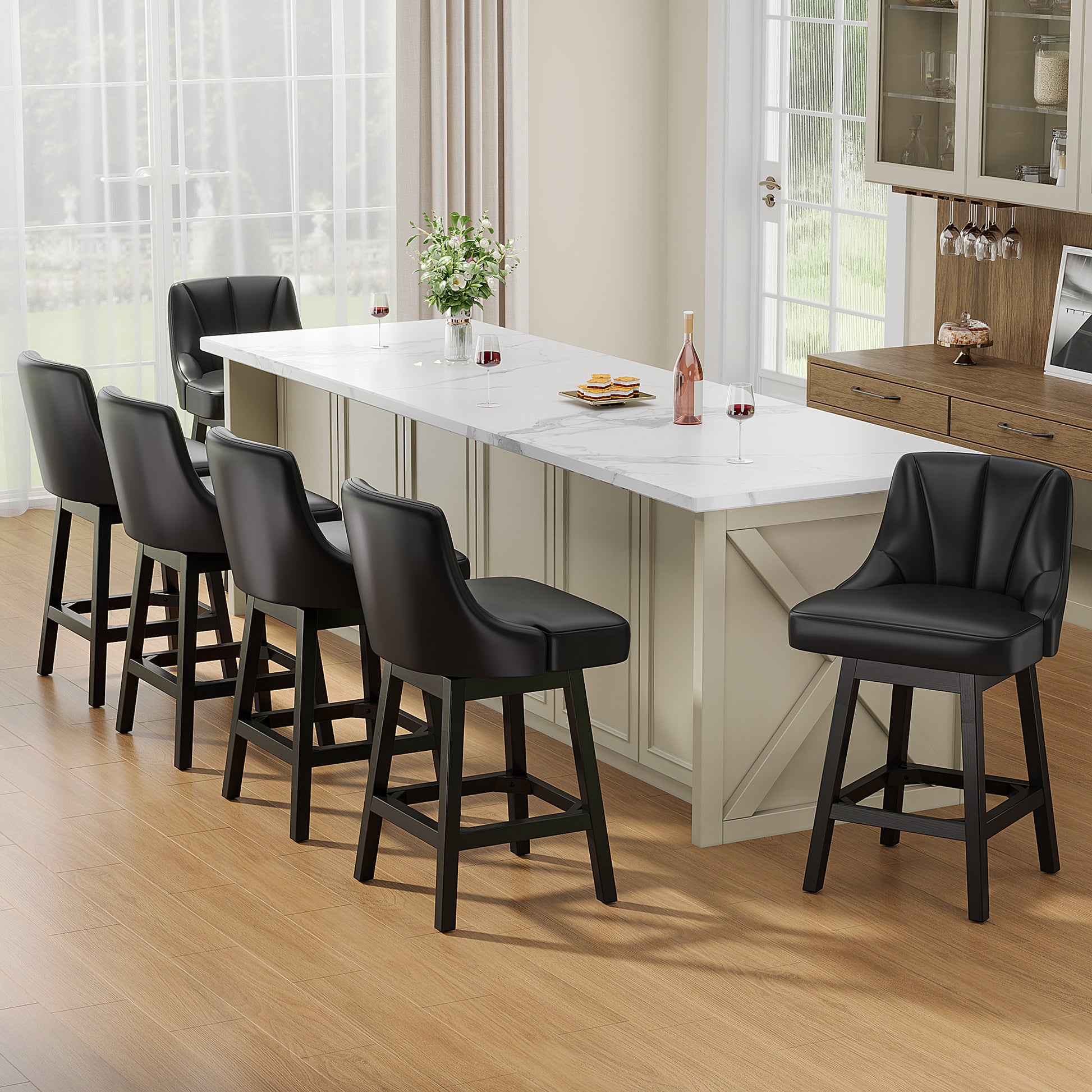 YaFiti Swivel Bar Stools with Backs, 26" Counter Height Bar Stools Set of 2, Modern Leather Extra Upholstered Counter Barstools with Square Solid Wood Legs for Kitchen Island, Dining Room, Black